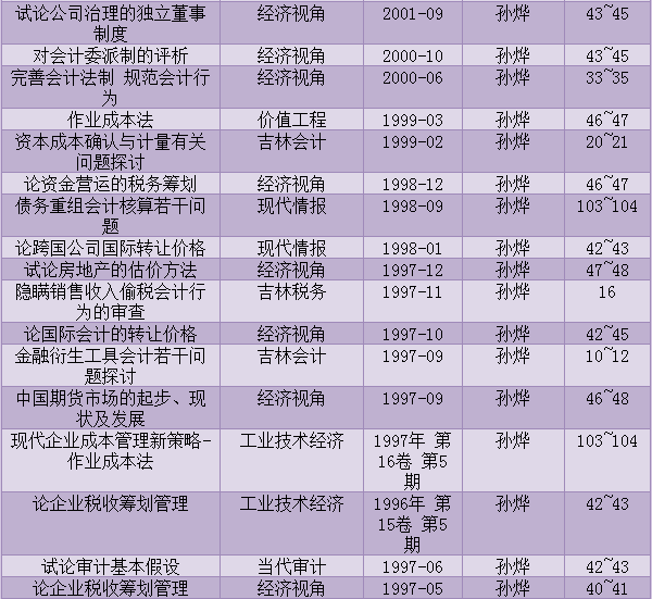 教育背景2002.09--2006.12 吉林大学商学院 管理学(财务管理)博士 1994.09--1997.06 长春税务学院 经济学(会计学)硕士 1982.09--1986.07 吉林财贸学院会计系 经济学(会计学)学士 学术经历2009.01--今 吉林大学商学院 教授 博士生导师 2008.03--今 吉林大学商学院 财务管理系主任 2006.09--今 吉林大学商学院 教授 2000.01--2006.09 吉林大学商学院会计系 副教授 1999.01--2000.01 长春税务学院会计系 副教授 1992.01--1999.01 长春税务学院会计系 讲师 1986.07--1992.01 吉林财贸学院会计系 助教 |